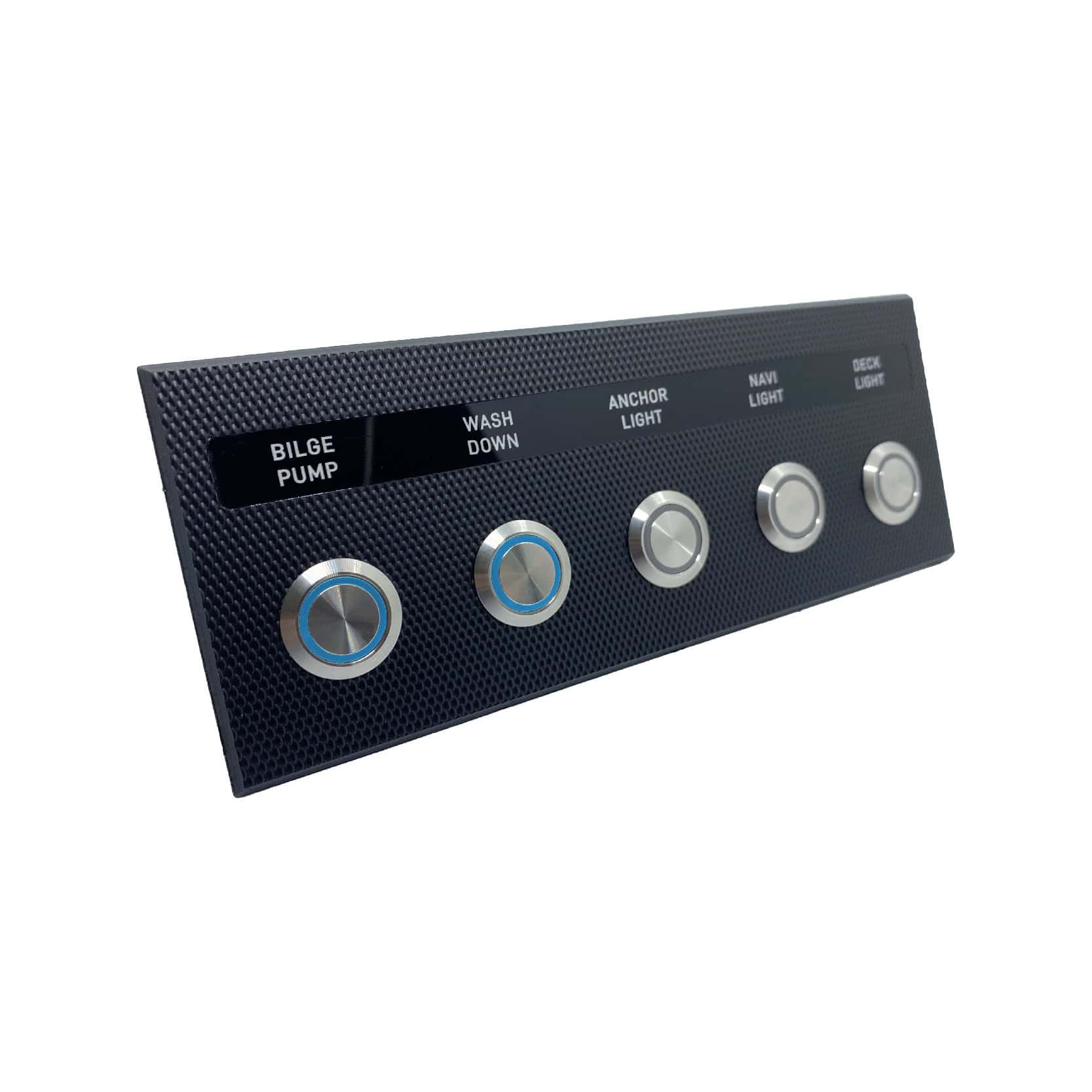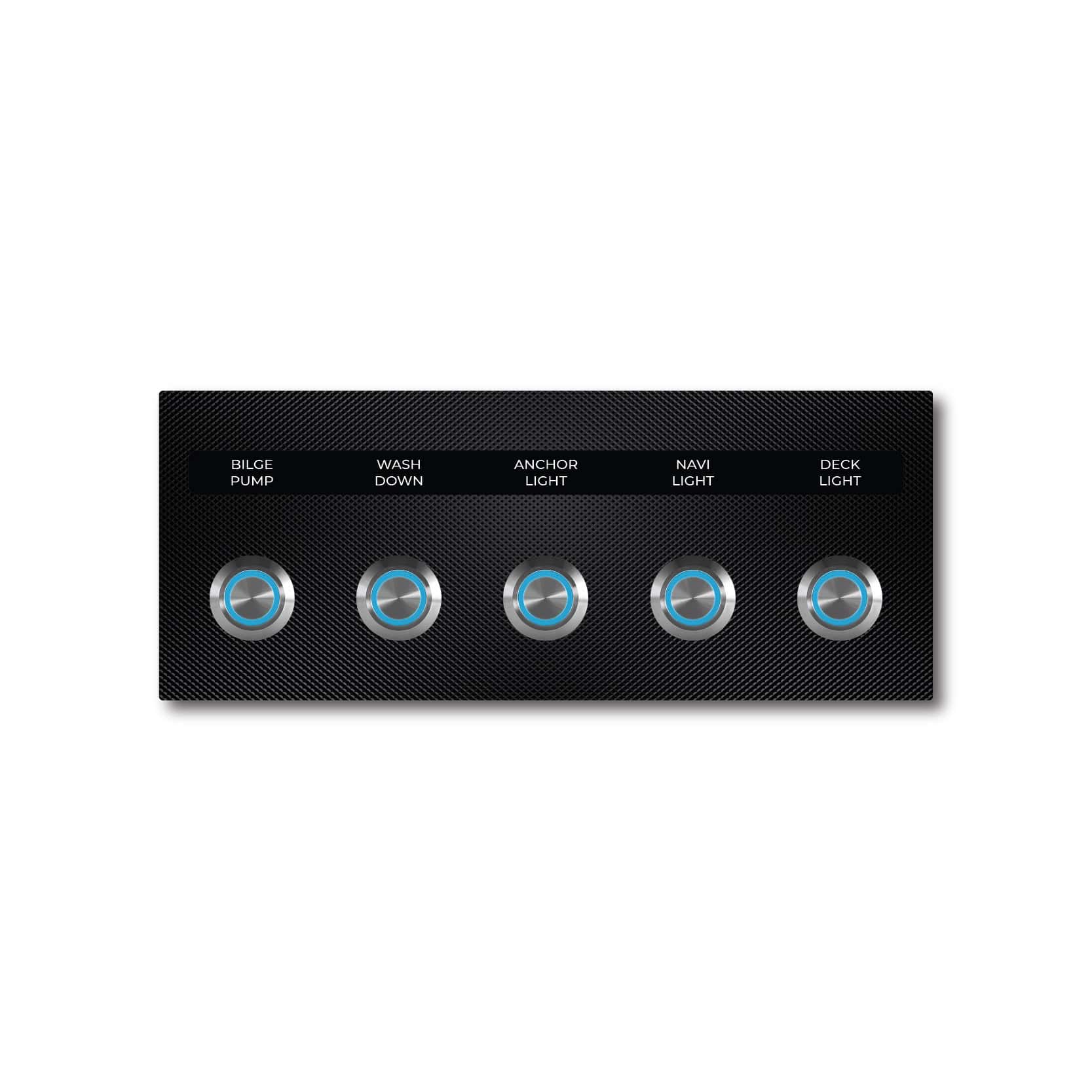 Marine Switch Panel ARTEX BLACK 3D with 5 SS Blue Switches